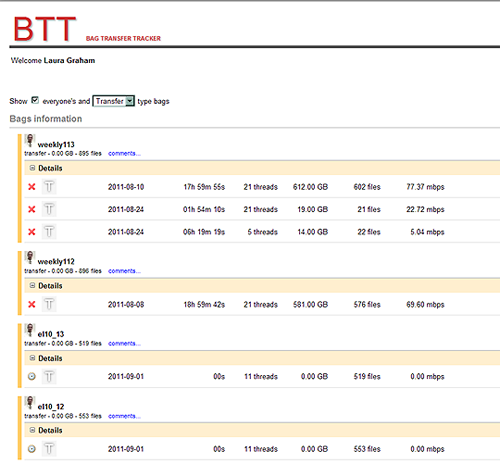 While CTS performs inventorying, copying and verifying services for us, the BTT still tells us where we are in our work processes. Most importantly, it tracks content acquisition processes that fall outside the CTS, such as external transfer from IA, and more recently, onsite crawling projects.