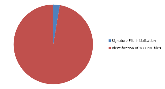Figure 1: Time needed for initialising the signature file compared to the execution time of identifying one single PDF file.